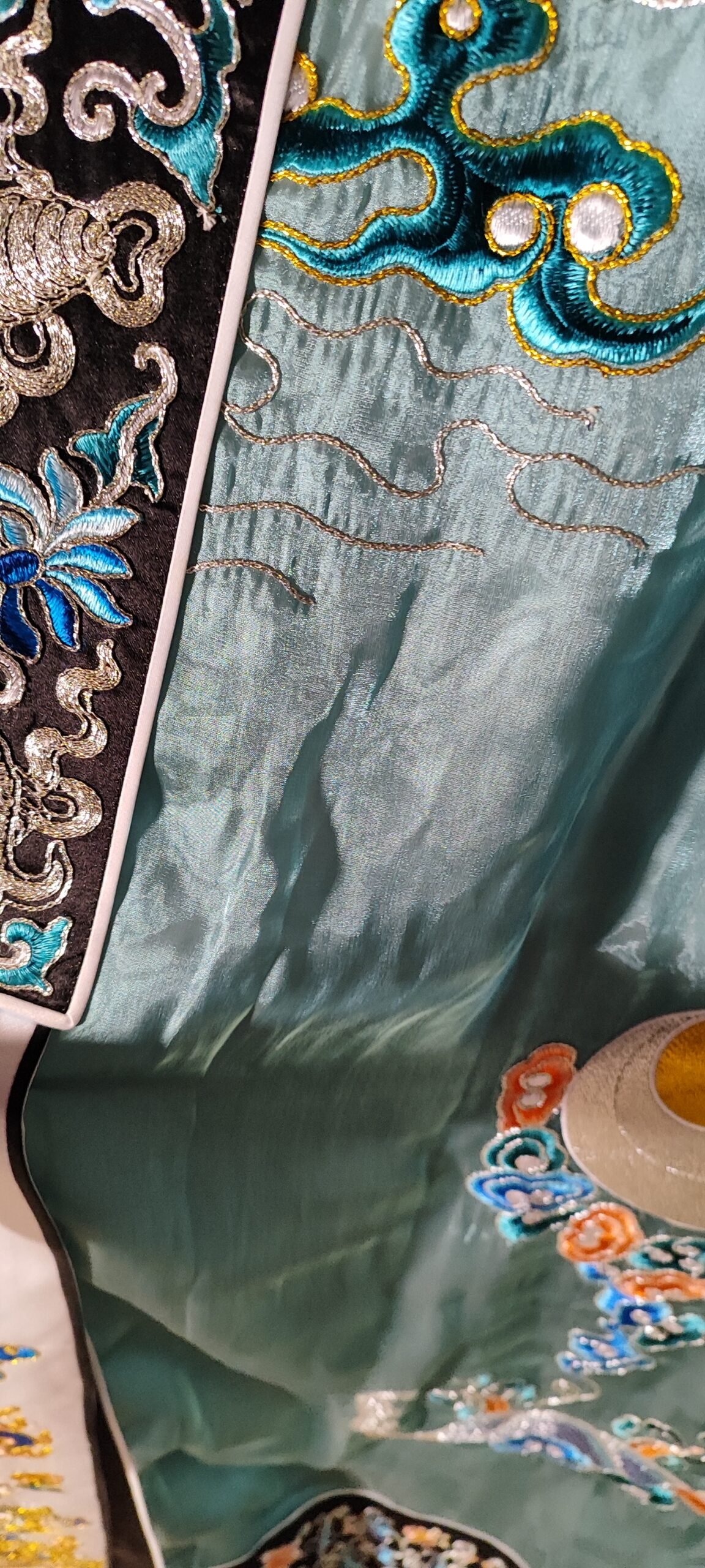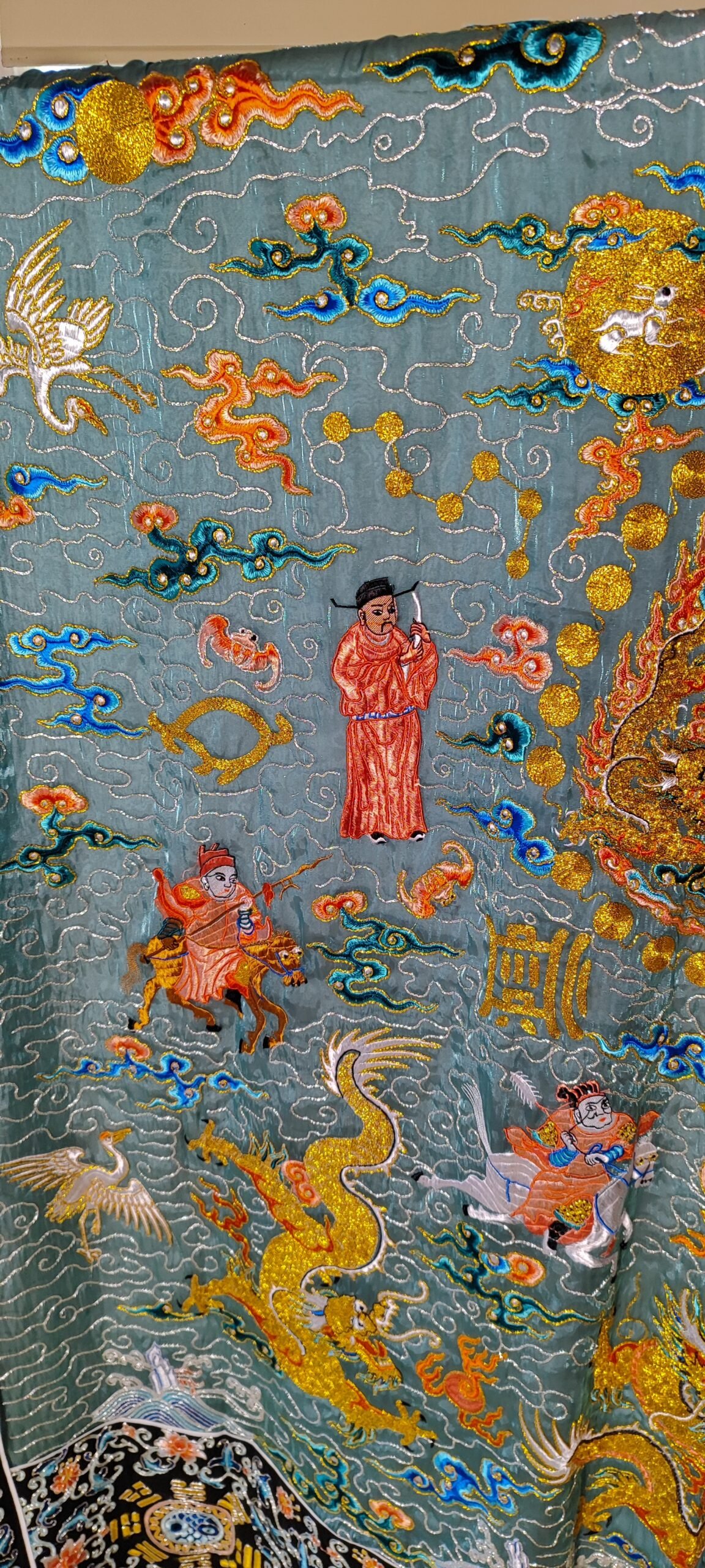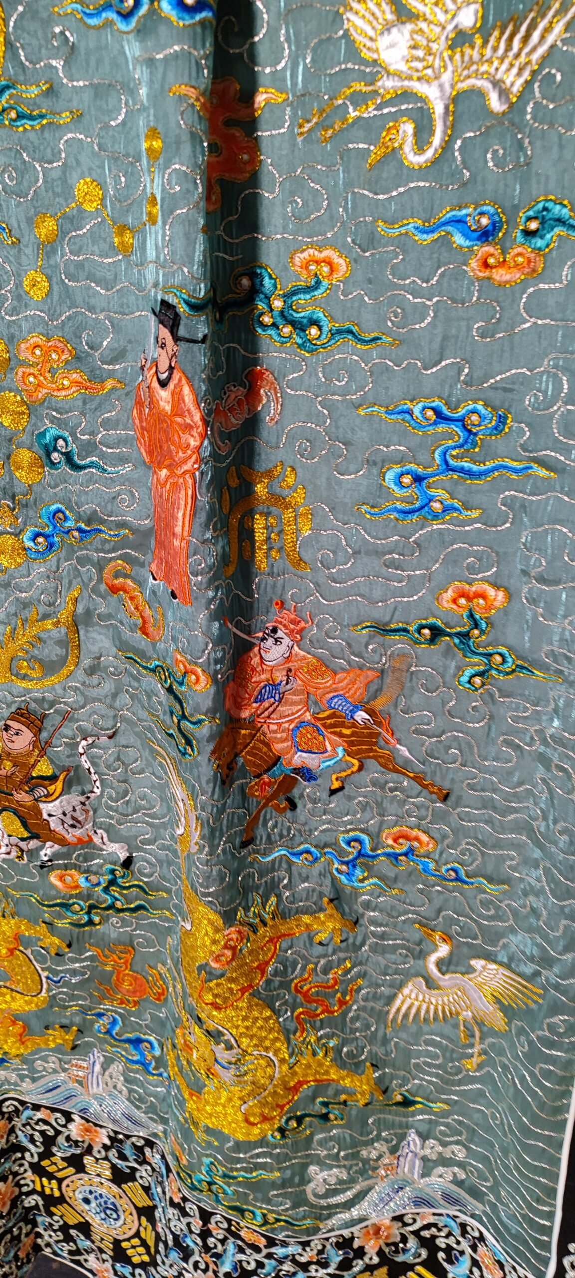 The unique design of this robe is very special. The robe has a half-transparent top layer, the special design includes heavenly officials and immortals.