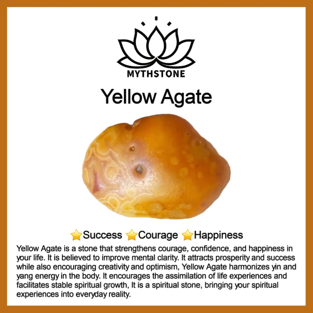 Yellow Agate is a stone that strengthens courage. confidence. and happiness in your life. It is believed to improve mental clarity. It attracts prosperity and success. while also encouraging creativity and optimism. Yellow Agate harmonizes yin and yang energy in the body. It encourages the assimilation of life experiences and facilitates stable spiritual growth. It is a spiritual stone. bringing your spiritual experiences into everyday reality.