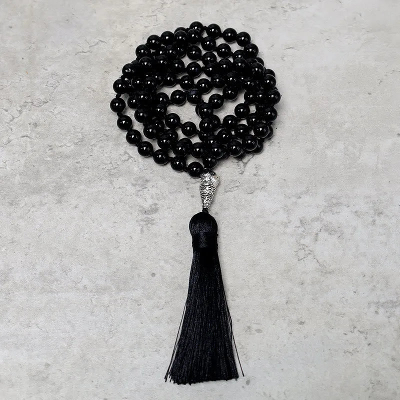 The Mythstone 108 Mala Black Onyx Beads Necklace is a powerful tool for yoga. meditation. and prayer. Crafted with high-quality Black Onyx. this mala offers protection. strength. and focus. It is handmade with natural materials. making it a meaningful accessory for your spiritual journey. Wear it as a bracelet or necklace to ground and protect yourself as you move forward.