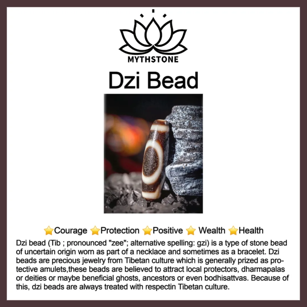Dzi bead (Tib. ; pronounced “zee”; alternative spelling: gzi) is a type of stone bead of uncertain origin worn as part of a necklace and sometimes as a bracelet. Dzi beads are precious jewelry from Tibetan culture which is generally prized as protective amulets.these beads are believed to attract local protectors. dharmapalas or deities or maybe beneficial ghosts. ancestors or even bodhisattvas. Because of this. dzi beads are always treated with respect in Tibetan culture.