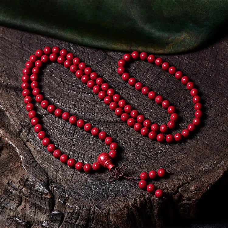 Mythstone 108 Mala Beads Cinnabar Om Mani Padme Hum Pattern Engraved Blessing Bracelet