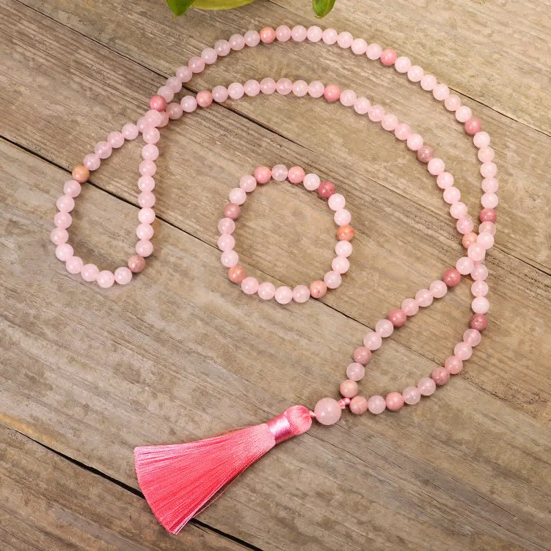 Mythstone 108 Mala Beads Pink Crystal Love Tassel Bracelet