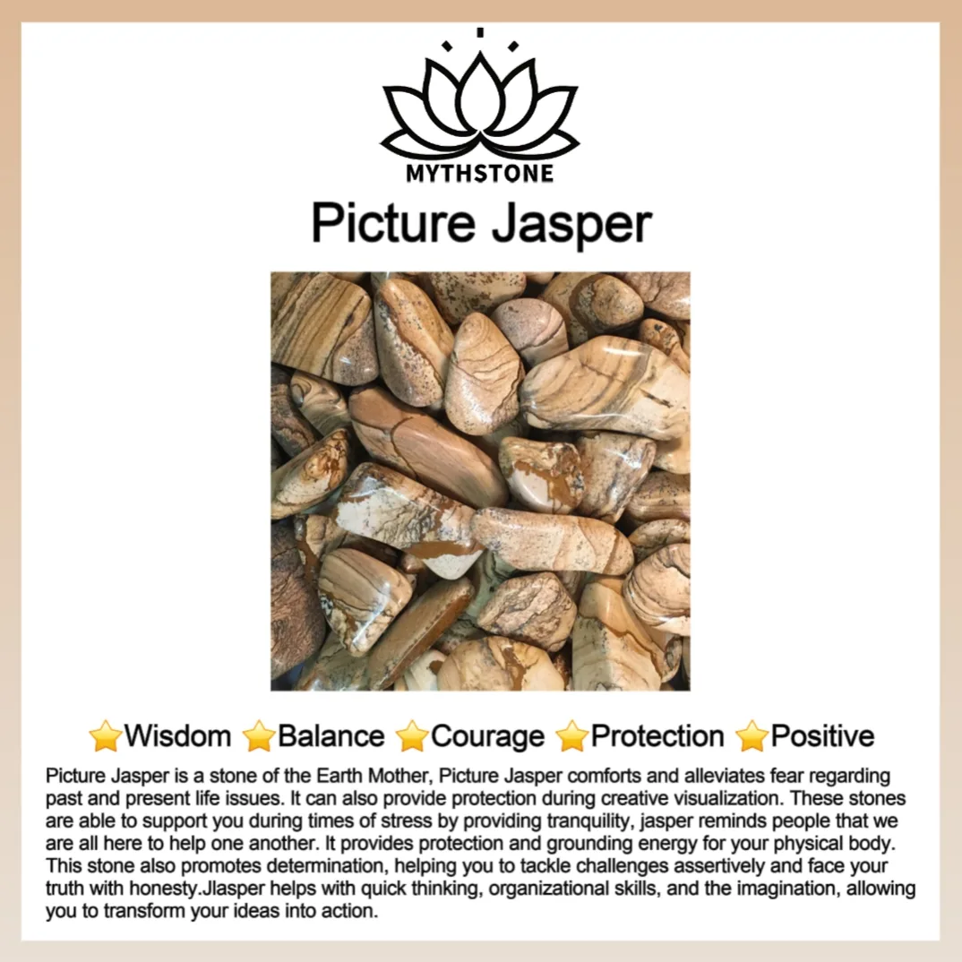 Picture Jasper is a stone of the Earth Mother. Picture Jasper comforts and alleviates fear regarding past and present life issues. It can also provide protection during creative visualization. These stones are able to support you during times of stress by providing tranquility. Jasper reminds people that we are all here to help one another. It provides protection and grounding energy for your physical body. This stone also promotes determination. helping you to tackle challenges assertively and face your truth with honesty.