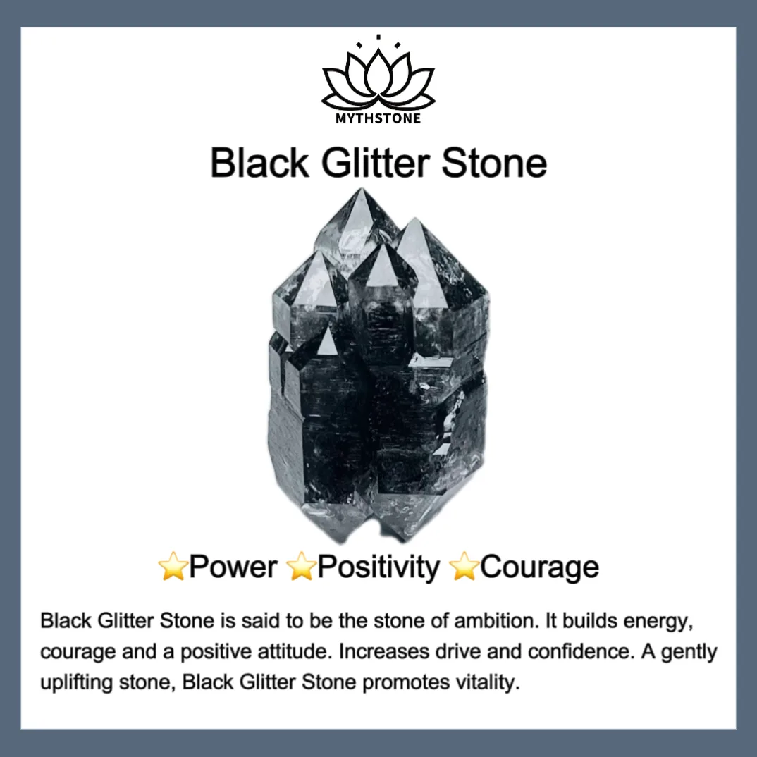 Black Glitter Stone is said to be the stone of ambition. It builds energy. courage. and a positive attitude. Increases drive and confidence. A gently uplifting stone. Black Glitter Stone promotes vitality.