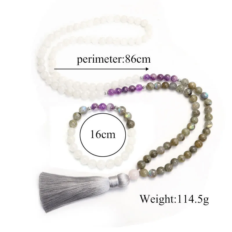 - Material: White Agate. Amethyst. Black Glitter Stone