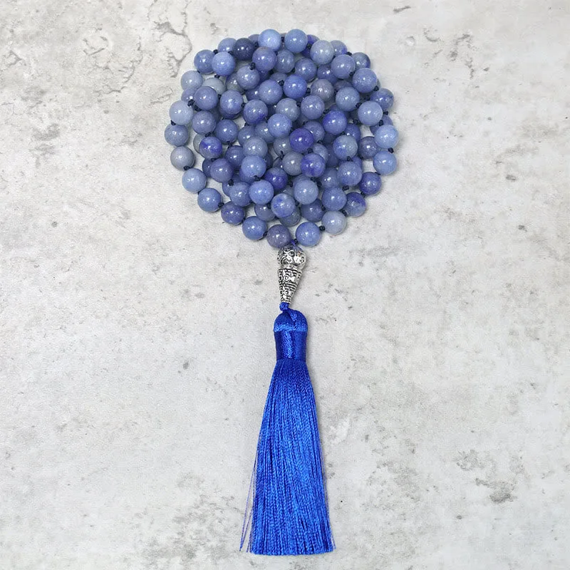 Mythstone 108 Mala Blue Aventurine Beads Yoga Meditation Prayer Beads Necklace