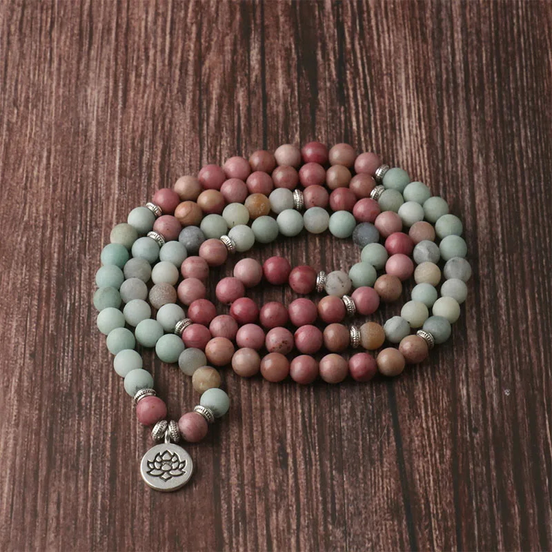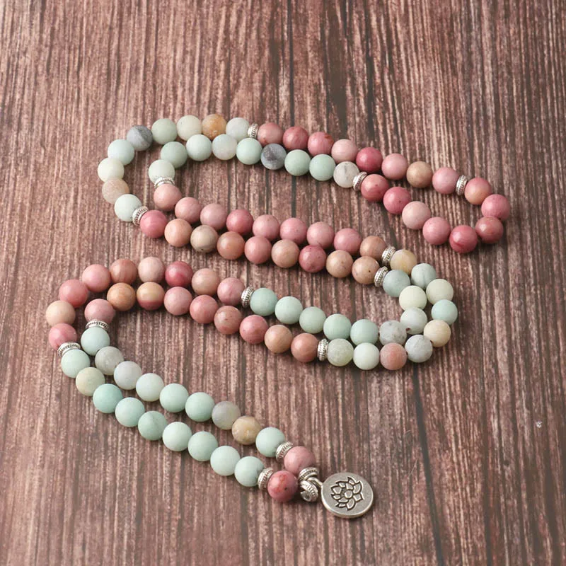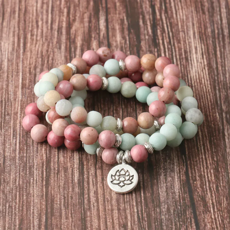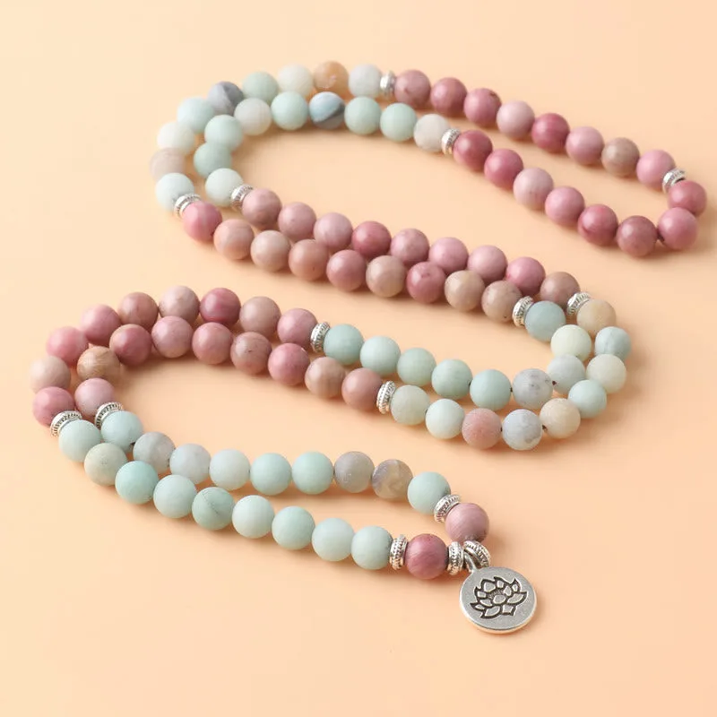 Mythstone 108 Mala Rhodonite Amazonite Beads Lotus Compassion Bracelet