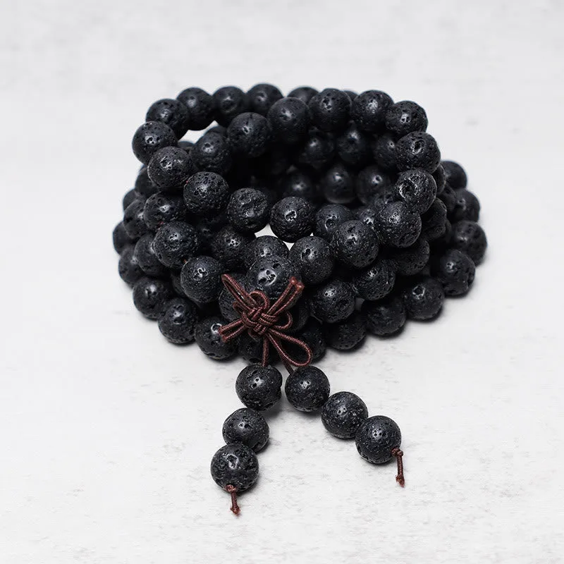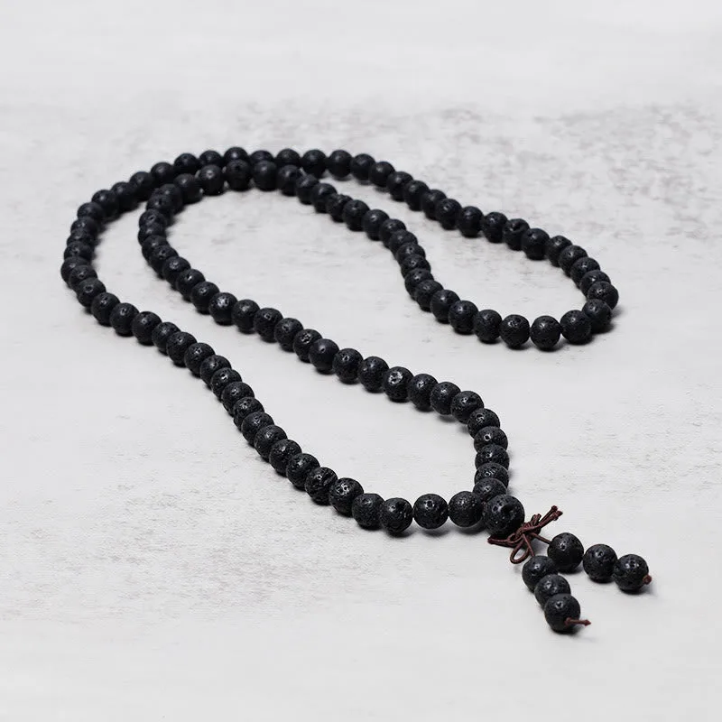 TheMythstone108 Natural Lava Rock Beads Prayer Mala Bracelet Necklace. ThisLava Rock Bracelet Necklacefeatures108 beadsand can be worn as aMala Bracelet Necklace. Made from natural lava rock. it’s perfect for meditation and spiritual practices. Elevate your style and spirituality with this unique accessory.