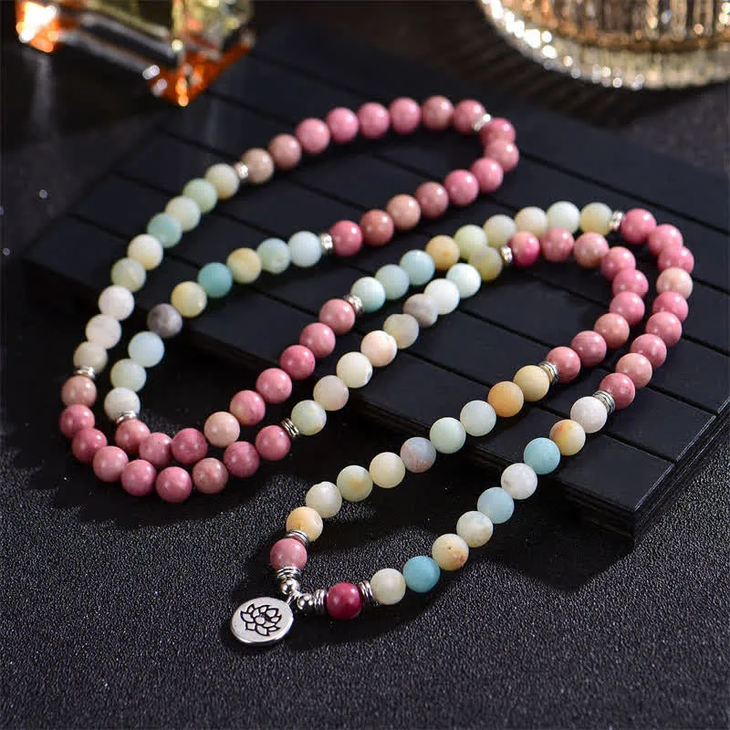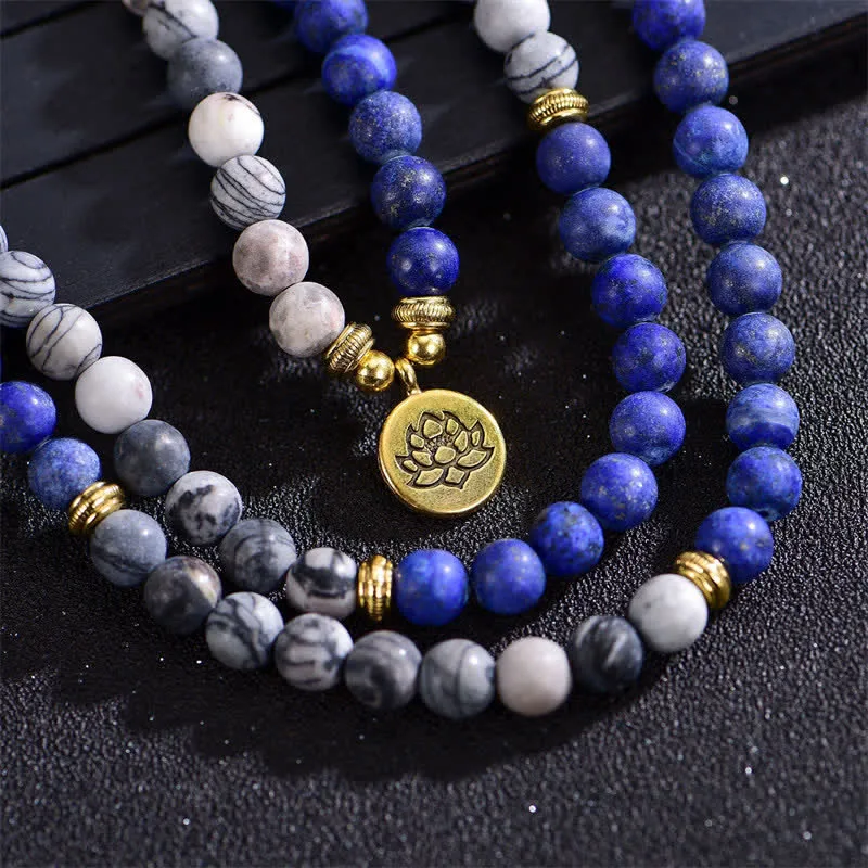 Mythstone Lazurite Picasso Jasper Amazonite Rhodonite Apatite Positive Lotus Prayer Bead Bracelet