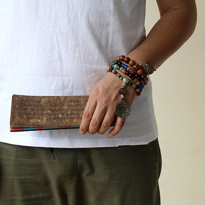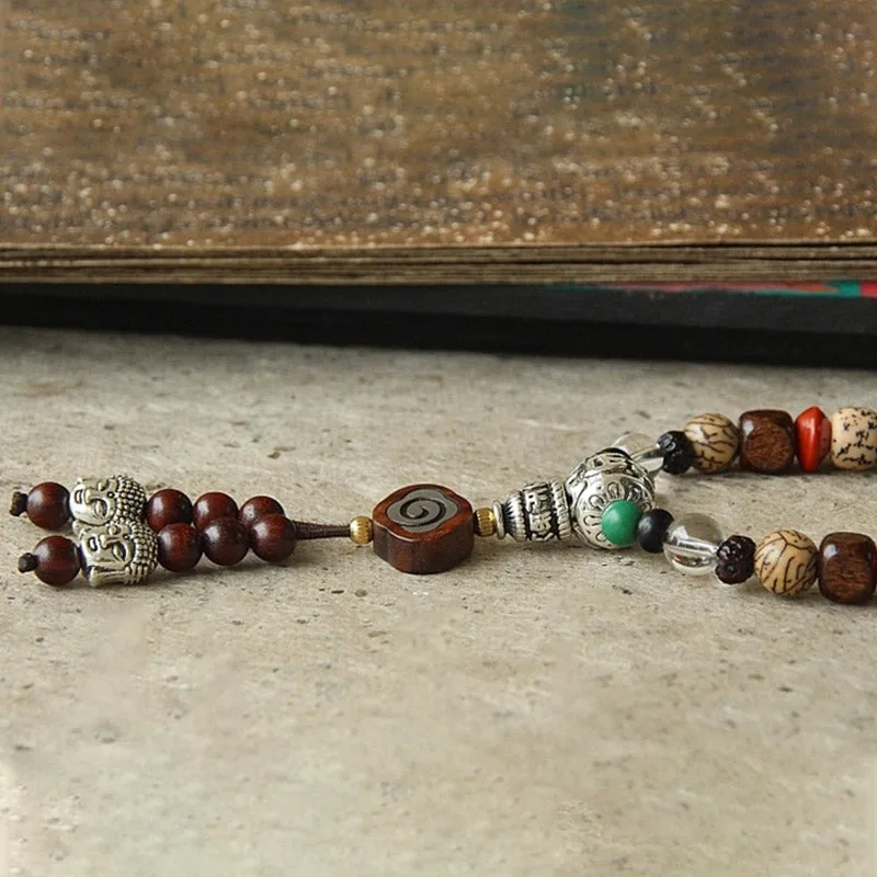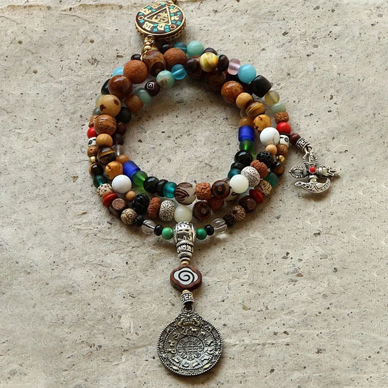 - Material: Bodhi Seed. Cinnabar. Copper. Tiger Eye. Coloured Glaze. Purple Core Wood. White Crystal. Coconut. Turquoise;