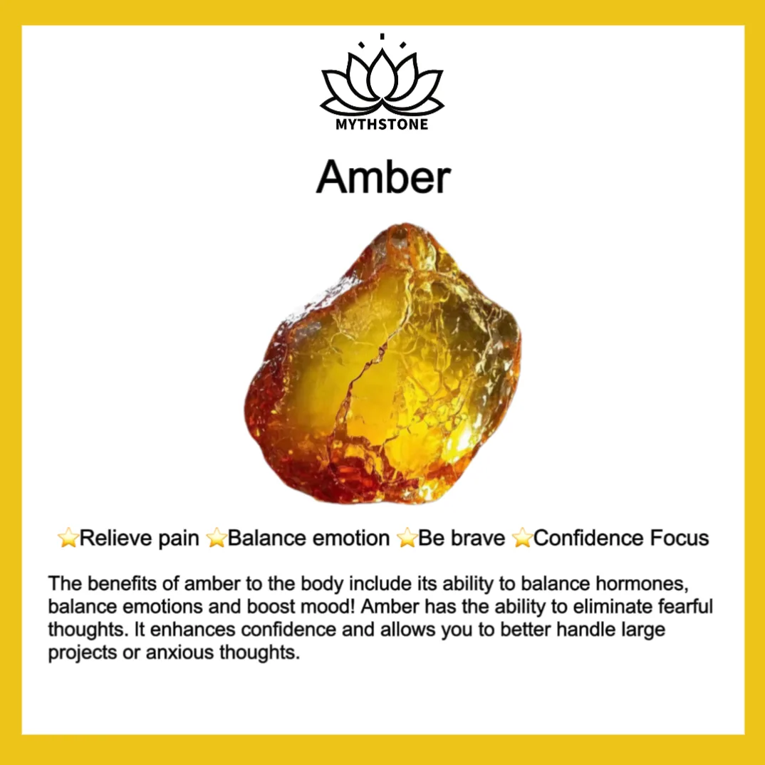 Amber has the ability to eliminate fearful thoughts. It enhances confidence and allows you to better handle large projects or anxious thoughts.