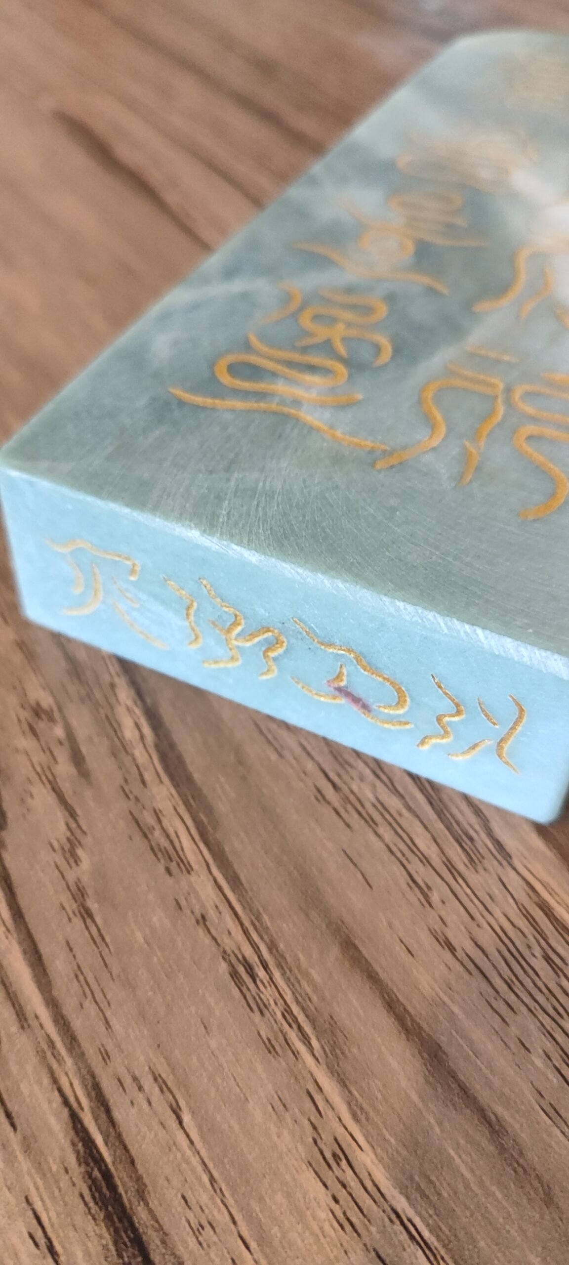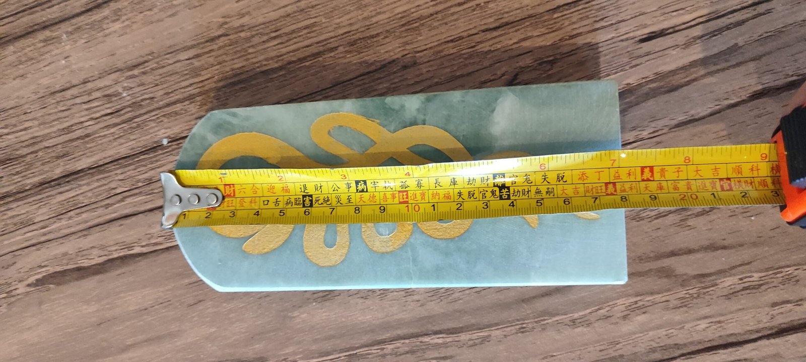 Because it is made of real green Jade, it has some weight, but not too heavy to use.