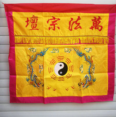 Traditional altar tablecloth with embroidery 万法宗坛 Wan Fa Zong Tan, dragon and Bagua symbols.